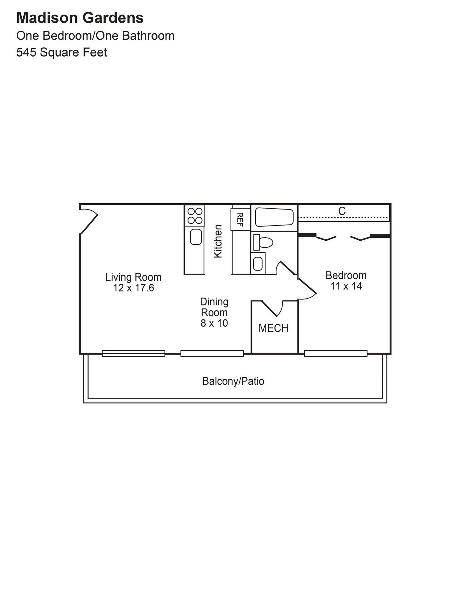 Madison Gardens invites you to come and tour our gorgeous One Bedroom Apartment Home. Residents can enjoy comfort and convenience in our unique spacious floor plans. Relax outside on your balcony or inside with your own central heating and cooling system. Our community is situated minutes from major shopping and highway thoroughfares.